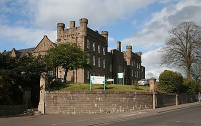 The County Buildings feature traditional Scottish architectural elements including decorative stonework and gabled roofs characteristic of the late 1800s civic construction period.