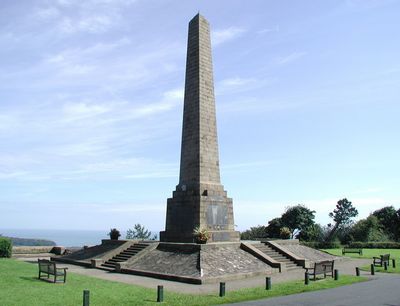 The memorial consists of a tall stone obelisk mounted on a square pedestal with eleven steps ascending from each side of the base.
