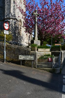 Beer War Memorial Cross, including steps, railings and gate to front, war memorial in Beer, East Devon, Devon, UK