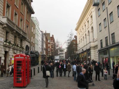 Two K6 telephone kiosks at the south end of James Street on the edge of Covent Garden