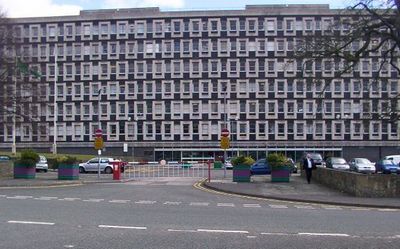 The County Hall stands on Raikes Lane, featuring a brutalist architectural design influenced by Frank Lloyd Wright's architectural principles and methods.