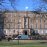 The County Hall features a symmetrical frontage with seventeen bays facing Castle Drive and includes projecting end sections with prominent columns.
