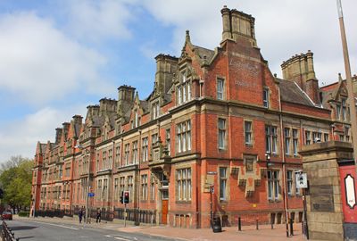 County Hall stands on Fishergate with an asymmetrical frontage of seven bays and features architectural elements of the Queen Anne revival style.