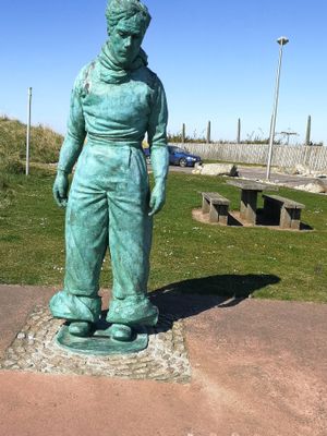 The Minesweeper, statue by William Lamb in Montrose, Angus, Scotland, UK