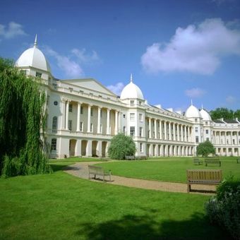 Sussex Place functions as the main building of London Business School, featuring a classical architectural design with columned entrance and symmetrical windows.