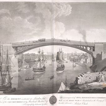 Construction began in September 1793, and upon its opening in August 1796, this structure represented the second major bridge built using cast iron technology.