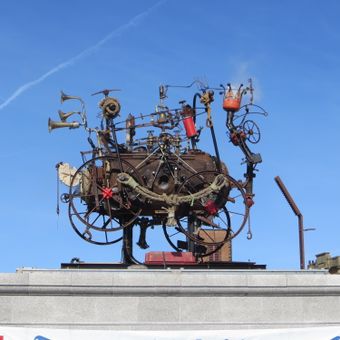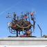 The Stockton Flyer emerges from a stone plinth every afternoon, reaching a height of seven meters while producing steam and mechanical movements.