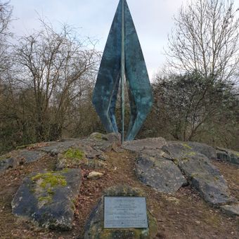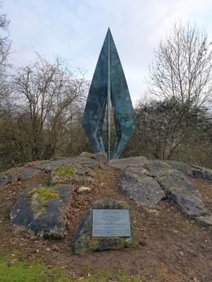 The Flame by Neil and Auriol Lawson Baker, sculpture by Neil & Auriol Lawson Baker situted outside the entrance to British Gas Plc former headquarters at Thames Valley Park in Reading, England