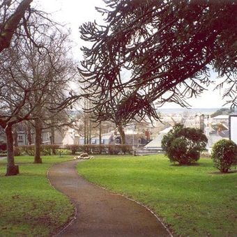The castle grounds, now known as Castle Park, occupy an elevated position overlooking the historic market town of Liskeard in Cornwall.
