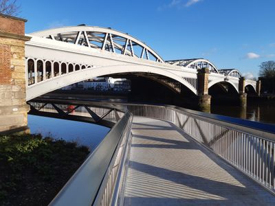 The 115-meter footbridge spans across the River Thames, connecting sections of the Thames Path while providing direct access to local rowing clubs.