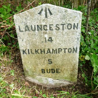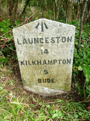 Milestone, S of Red Post, beside Bude Canal, milestone in Launcells, North Cornwall, UK