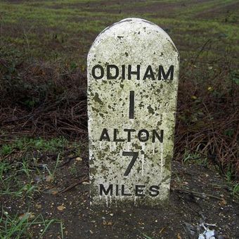 Milestone, SW edge of Airfield, nr jct with private road, milestone in Odiham, Hart, UK