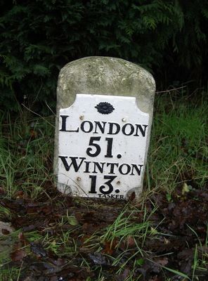 Milestone, Winchester Road, Greenways Farm, just E of jct with Lapwing Way