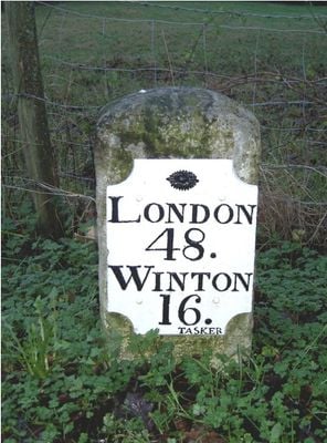 Milestone, Butts Bridge, milestone in Alton, East Hampshire, UK