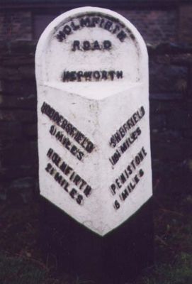 Milestone, Penistone Road, on bend nr top of hill south of minor X rds, milestone in Holme Valley, Kirklees, UK