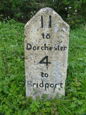 Milestone, opp. road to Askerswell at SY5220792427, milestone in Askerswell, West Dorset, UK