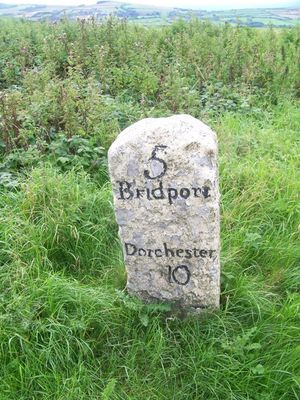 Milestone, opp. road to Askerswell at SY5368992072, milestone in Askerswell, West Dorset, UK