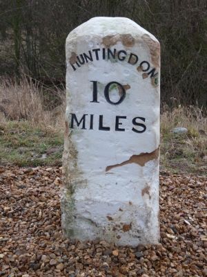 Milestone, on slip road to Leighton Bromswold and entrance to Catworth Gorse