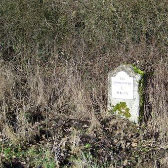 Milestone, W of Ready Token, milestone in Ampney St Mary, Cotswold, UK
