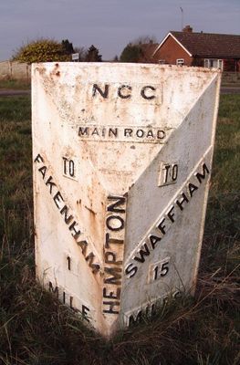 Milepost, 15yds N of jct with A1065, milepost in Hempton, North Norfolk, UK