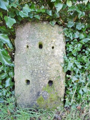Milestone, Leigh Farm, Standerwick, where old road is walled off, milestone in Beckington, Mendip, UK