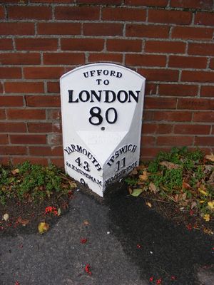Milestone, N end of Ufford, by Hill Farm, milestone in Ufford, Suffolk Coastal, UK