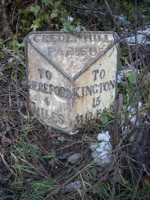 Milepost, E of RAF Hereford, milepost in Credenhill, Herefordshire, UK