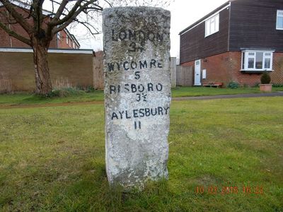 Milestone, Wycombe Road; in front of Dashwood Arms PH at Chipps Hill jct, where older road forms lay-by
