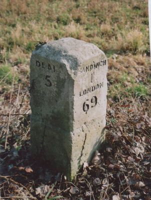 Milestone, Deal Road, NE of roundabout with A258, milestone in Sandwich, Dover, UK