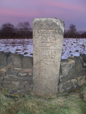 Milestone, entrance to Darwin Forest Country Park, NE of Burnt Piece crossroads (Flash Dam)
