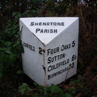 Milepost, jct of old A5 to Wall, milepost in Shenstone, Lichfield, UK