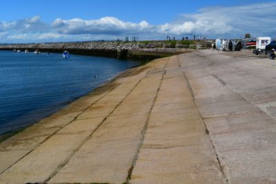 The breakwater is easily reached on foot from the town center, with parking available nearby and a clear path for walking. Low tide offers the best views and safest conditions for exploring, as more of the structure becomes exposed and the surface is more stable.