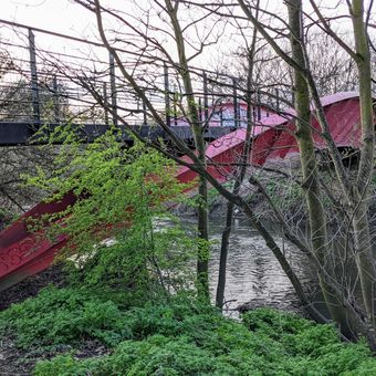 Friends Bridge, Pedestrian bridge (footbridge) in Hackney, London, England, United Kingdom; Hackney, London, England, United Kingdom