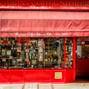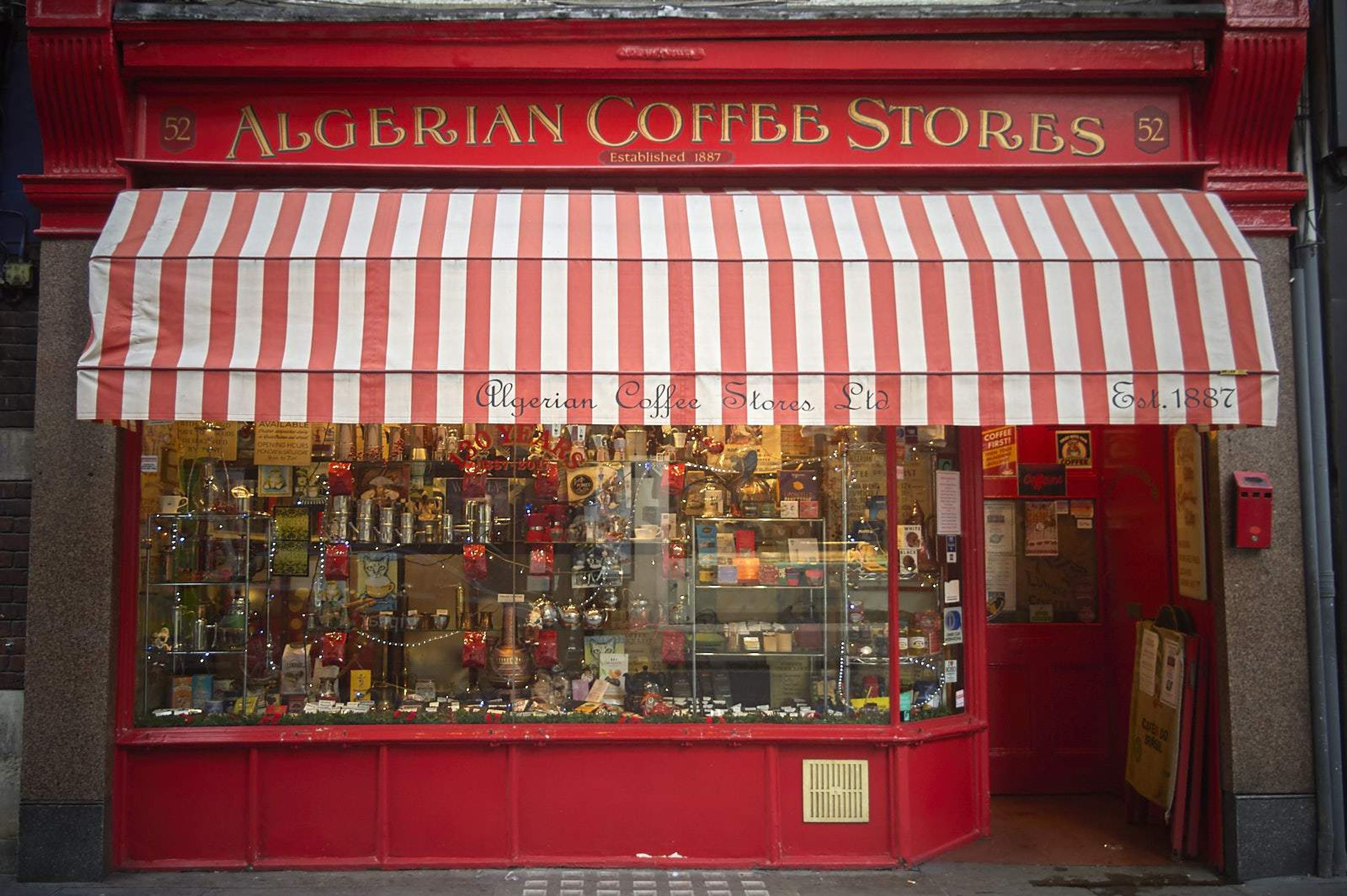 Algerian Coffee Stores, Historic coffeehouse in Soho, Westminster, United Kingdom.