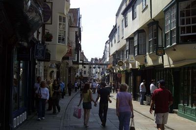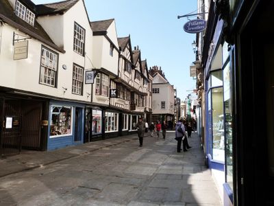The street holds numerous listed buildings that housed glass painters, goldsmiths, printers, and bookshops throughout different periods of York's development.