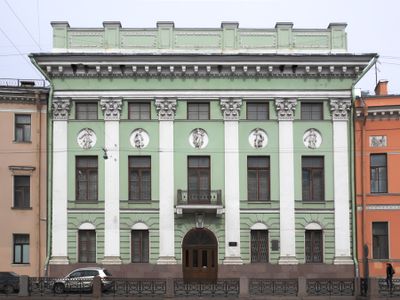 The mansion retains original decorative elements including frescoes and ornate interior designs that represent the artistic standards of Saint Petersburg's architecture.