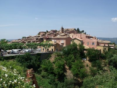 The overlook presents views of traditional Provençal buildings colored with natural pigments extracted from local quarries.