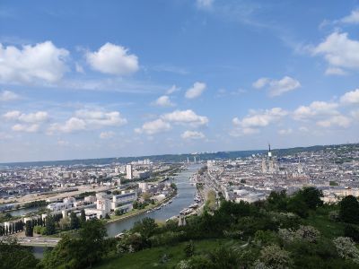 The observation platform on Sainte-Catherine hill provides a complete view of Rouen city, the Seine River, and the Notre-Dame Cathedral at 140 meters altitude.