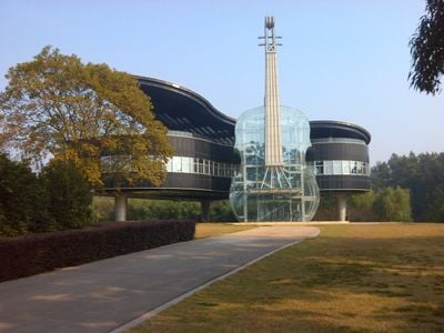 The building houses an exhibition space displaying urban planning maps of Shannan district. Two concert halls allow for musical performances inside the monumental piano and violin structures.