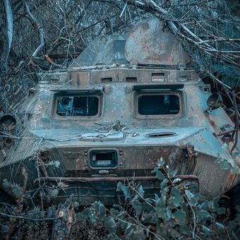 The site stores numerous contaminated vehicles from the Chernobyl cleanup operation, including Soviet bulldozers and specialized robotic equipment.