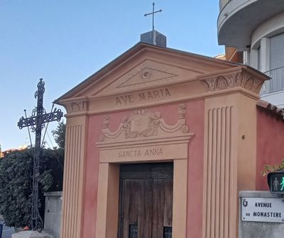 The Chapelle Sainte-Anne stands at the intersection of Avenue du Monastère and Avenue de Flirey, north of the Cimiez Arena in Nice.