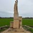 The memorial features a statue of a man raising his left fist toward the sky, with a French flag pole positioned behind the figure.