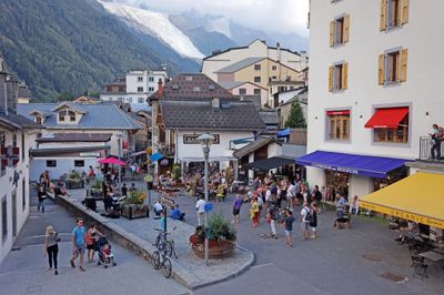 Street musicians perform throughout the year against the backdrop of Mont Blanc, creating an outdoor concert hall with natural mountain acoustics.