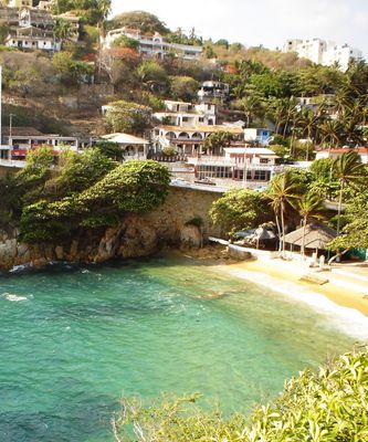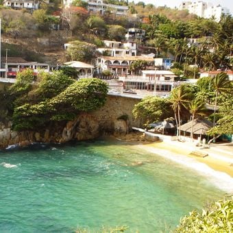 The beach extends along the Mexican Pacific coast, featuring golden sand shores and clear waters suitable for various water activities.