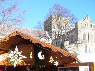 Winchester Cathedral Christmas Market, Christmas market at Winchester Cathedral Close, England.