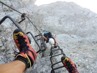 Via Ferrata dei Finanzieri, Mountain climbing route in Canazei, Italy.