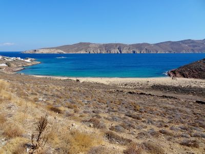 Agios Sostis Beach, Remote beach in northern Mykonos, Greece.