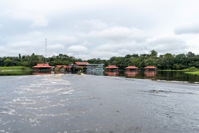 The Uakari Floating Lodge consists of five bungalows with ten rooms, built on floating wooden platforms within the Amazon rainforest waters.