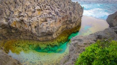 Visitors should check tide schedules and only enter the pool during low tide, as strong currents and high waves make swimming dangerous at other times.