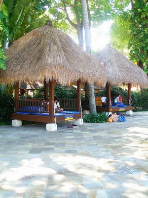 The water park incorporates Indonesian architectural elements and tropical gardens throughout its design, reflecting the regional heritage of Bali.